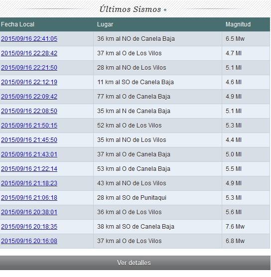 Asimismo el centro indica que hasta el momento se han registrado cerca de 15 réplicas, de las cuales cinco han superado los 6 grados, hasta las 23 horas.