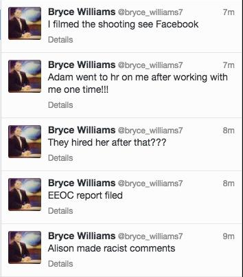 Posteriormente, se reveló que el autor de los disparos era un enfadado ex empleado del canal: Vester Flanagan, mejor conocido como Bryce Williams, el cual se habría suicidado tras matar a los reporteros. El hombre difundió un perturbador video en las redes sociales, segundos antes de dispararles y tuvo tal impacto, que debieron ser censuradas y eliminadas, como recoge Mirror.