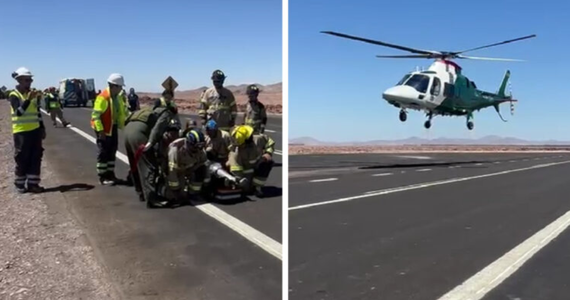 Además, a ellos se sumaron personal del SAMU y de la Sección Aérea de Carabineros de Chile, siendo estos últimos quienes -por medio de un helicóptero- trasladaron en estado grave hasta el Hospital Regional de Iquique a una de las personas heridas.
