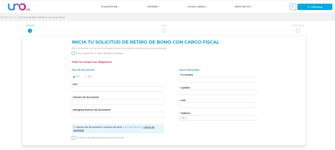 Más tarde se sumó la AFP UNO, quien también activó un formulario para solicitar el bono con cargo fiscal. Solo debes digitar una serie de datos para realizar el trámite