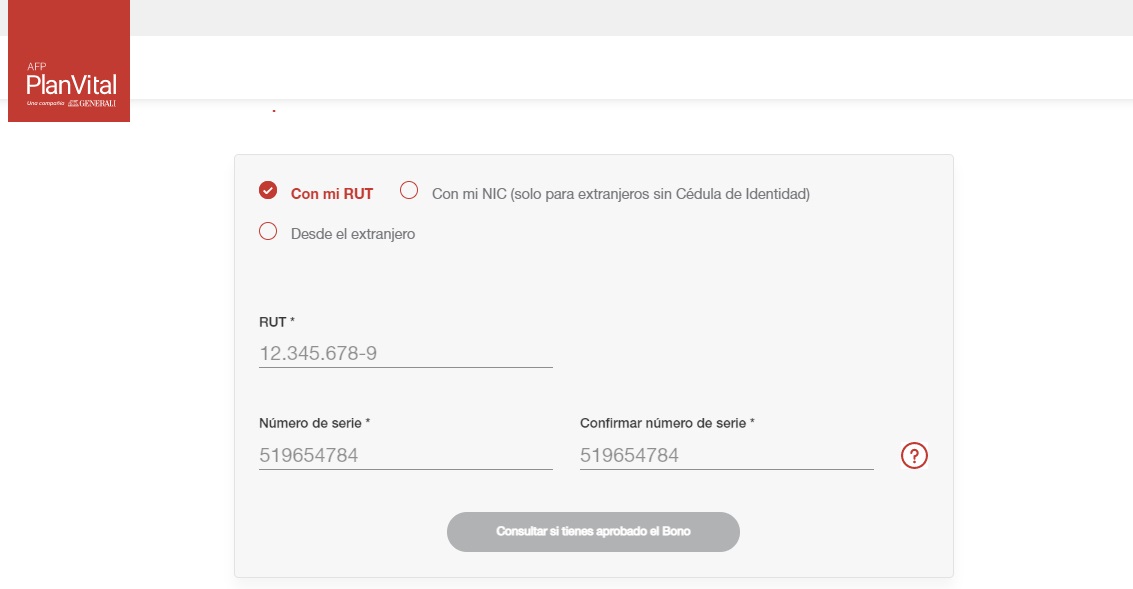Finalmente, PlanVital habilitó una plataforma donde completando tus datos personales, podrás verificar si tienes derecho al Bono de Cargo Fiscal y el monto que podrás solicitar.