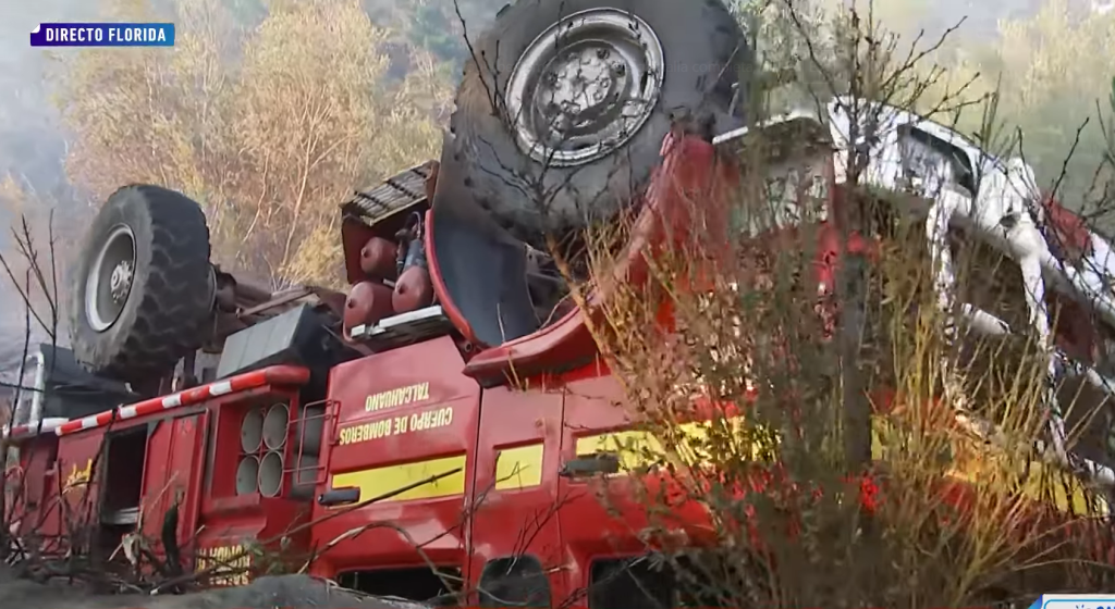 Un accidente se registró durante la madrugada de este jueves en la comuna de Florida, luego de que un carro de Bomberos de Talcahuano volcara, mientras combatía un incendio en la zona.