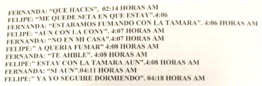 El viernes 9, continúa, dijo volver a su hogar después de trabajar cerca de las 22:00, momento en que toma contacto telefónico con Fernanda, sin recordar quién efectuó la llamada.