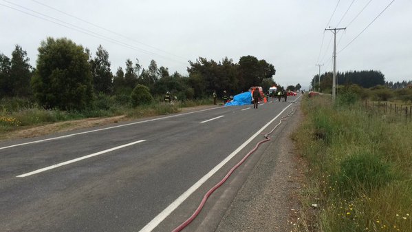 Personal de Bomberos y Carabineros llegaron al sitio del accidente, mientras que el tránsito por dicha ruta se encuentra interrumpido.