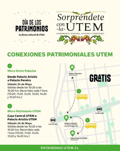 La segunda ruta, “Patrimonio UTEM”, recorrerá desde la Casa Central UTEM, ubicada en Calle Dieciocho 161, hasta el Palacio Ariztía UTEM.
