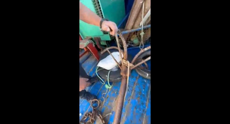 Un registro audiovisual, compartido a Radio Bío Bío, detalla cómo el instrumento utilizado para el fondeo de las embarcaciones está levemente torcido y con una de sus puntas rotas.