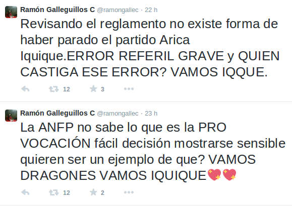 A continuación, te dejamos la escandalosa cortina de tuiteos de la autoridad comunal, donde se da el tiempo de criticar a la ANFP, al cuadro de San Marcos, y cómo no, al jugador afectado.