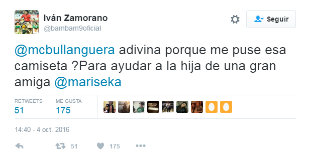 “@mcbullanguera adivina por qué me puse esa camiseta… Para ayudar a la hija de una gran amiga @mariseka. Y adivina cuál de los 4 ganó una medalla olímpica y fue campeón goleador en España e Italia jajjaja. Bendiciones compadre”, escribió BamBam.