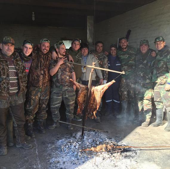 Este martes volvió a responder con una imagen similar y en la que aparece con todo su grupo de compañero de caza que aguardaban alrededor de las brasas un apetitoso cordero al palo.