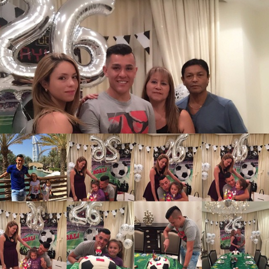 Ayer 21 de abril el ariete cumplió 26 años, y pese a la distancia con Chile, se las ingenió para celebrar con todo junto al contingente nacional en Emiratos, país donde ha hecho muy buenas migas con la familia de Jiménez y con la de Carlos “Piña” Villanueva, que juega en el Al-Shabbab.