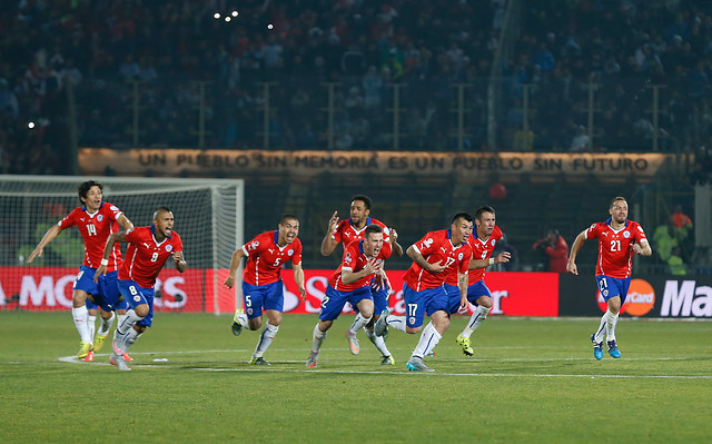 La imagen lo dice todo. Matías Fernández, Arturo Vidal, Francisco Silva, Angelo Henríquez, Jean Beausejour, Gary Medel, Mauricio Isla y Marcelo Díaz corren en búsqueda de Alexis. Corren en búsqueda del compañero que coronó el sueño de un pueblo hastiado de sufrimiento, de injusticias, de tragedias deportivas y de las otras, y que ponían fin a 100 años de postergaciones.