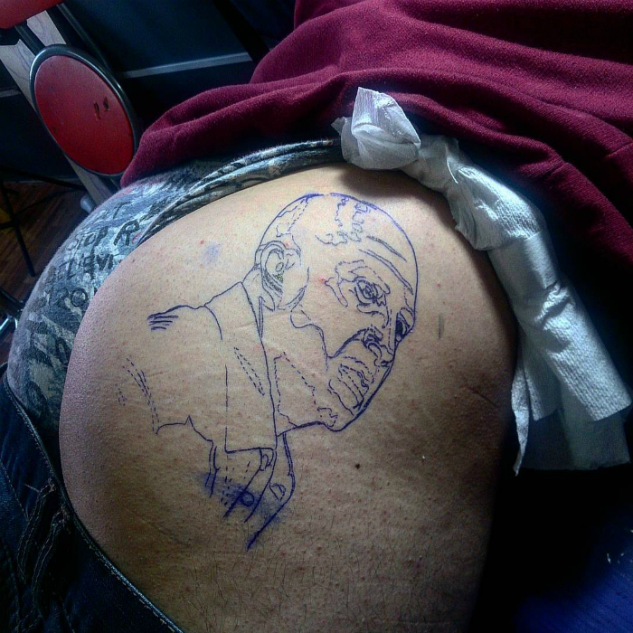 Por su parte, el tatuador a cargo de la obra, Claudio Valenzuela, se mostró un tanto perplejo al comienzo. “Al principio me dio risa, especialmente por el diseño que era un meme que se hizo de Jorge Sampaoli, pero en una sola sesión de cuatro horas pudimos terminar el tatuaje. No le dolió tanto porque es un zona super comoda”, manifestó el artista al diario “Pop”.