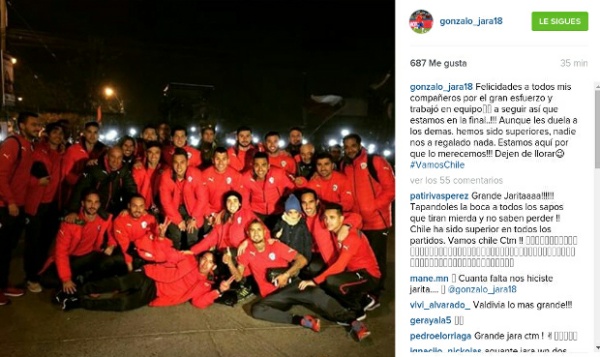 Esta es la supuesta foto y mensaje que Jara habría publicado horas después del encuentro de Chile y Perú.