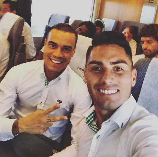“De camino a Pamplona (Osasuna) con el crack @rauldetomas17. Vamos por esos 3 puntos y seguir sumando!” (sic), es el mensaje que acompaña la foto del novio de Faloon en la red social.