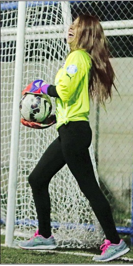 Luciendo la camiseta que Claudio utiliza en La Roja y unos guantes idénticos a los que ocupa el meta culé, la guapa fémina demostró todas sus condiciones en cancha.