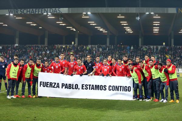 Exhibiendo un lienzo con la leyenda “Fuerza Pablo, estamos contigo”, ‘La Roja’ demostró toda su solidaridad con el pelotero que juega el partido más difícil de su vida.