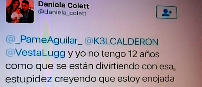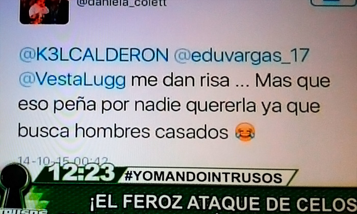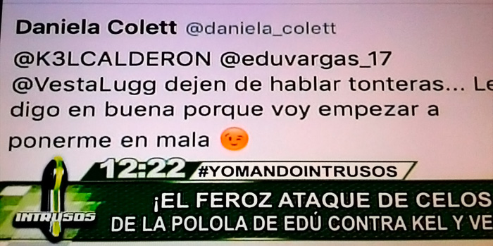 De igual forma, el programa de farándula Intrusos de La Red durante su emisión de jueves comentó el tema y exhibió los “pantallazos” en cuestión.