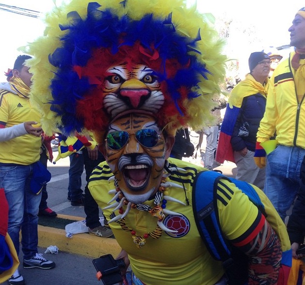 Los geniales atuendos de 2 hinchas que llegaron a apoyar a Colombia