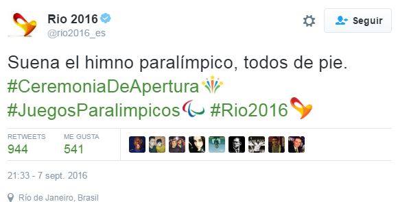 La ceremonia de apertura de los Juegos Paralímpicos de Río 2016 estuvo marcada por un desubicado comentario que se lanzó en la cuenta de Twitter oficial del evento deportivo.