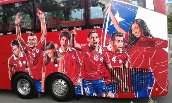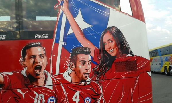 Por lo general, en la carrocería del bus se retratan a los principales jugadores del combinado nacional, y en ocasiones también se hace lo propio con ‘hinchas genéricos’. Esto último dejó marcando ocupado a varios fanáticos de ‘La Roja’ que se percataron del particular trabajo de pintura del bus, cuando este llevaba raudo a los peloteros al estadio Monumental para enfrentar a Uruguay.