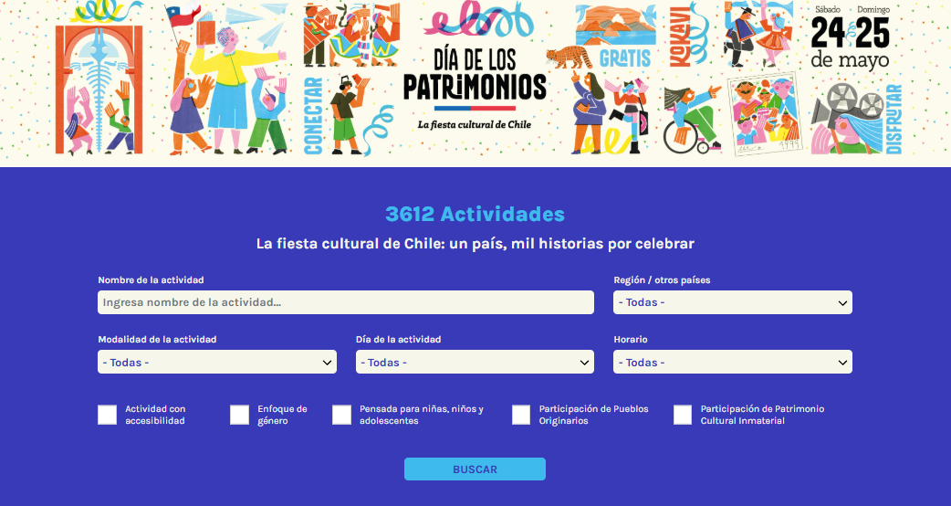 Para buscar panoramas según la región donde vives, debes ingresar al sitio Día de los Patrimonios. Ahí encontrarás un buscador que facilita encontrar actividades cerca de ti.