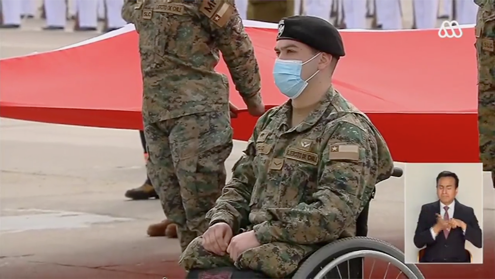 El cabo 2º del Ejército Bryan Castillo Salgado también fue parte de los representantes, quien sufrió la amputación de sus extremidades inferiores tras un accidente ocurrido cuando realizada labores de control en toque de queda en Curicó, región del Maule.