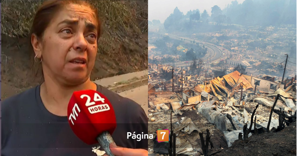 Una madre evidenció con angustia que desconoce el paradero de su hijo con discapacidad, quien salió de su hogar antes de que el incendio forestal arrasara la población Séptimo de Línea, región del Biobío.