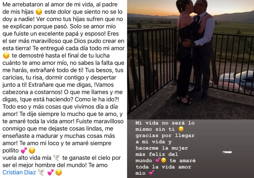 “Te amo, mi loco, y te amaré siempre, pollito. Vuela alto, vida mía. Te ganaste el cielo por ser el mejor hombre del mundo. Te amo, Cristián Díaz”, cerró.