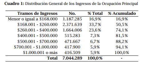 Es más, del total de compatriotas, el 50,5% recibe una suma igual o inferior a $260.000 líquidos mensuales. Como dato a tener en cuenta, cabe mencionar que en nuestro país el salario mínimo actualmente es de $241.000 brutos, y aumentará a $250.000 el 1 de enero de 2016.
