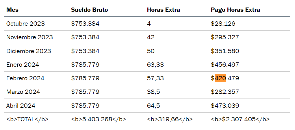 El hombre de 31 años, que también es conductor de microbuses en Viña del Mar, sumó más de $420 mil en horas extra el mes en que ocurrieron los hechos.