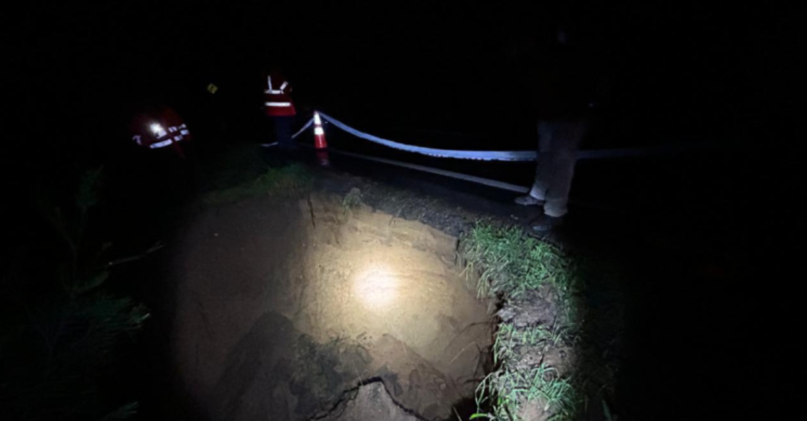 En medio de un intenso sistema frontal, se formó un gran socavón en la ruta que conecta a Concepción y Florida, en la región del Biobío.