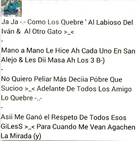 “Jaja, cómo lo quebré. ‘No quiero pelear más’ decía, pobre, qué sucio. Delante de todos sus amigos lo quebré. Así me gano el respeto de todos esos giles. Para que cuando me vean, agachen la mirada”, escribió.