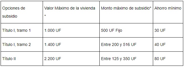 Con lo anterior, las personas beneficiadas podrán adquirir una vivienda nueva o usada de hasta 2.220 UF (60,3 millones de pesos); o en el caso de ser propietario de un sitio, construir una casa con un monto máximo de 2.000 UF (poco más de 54,8 millones de pesos).