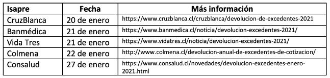 “Durante el mes de enero se realizará devolución de excedentes, a diferencia de lo que ocurrió el año pasado que fue en marzo, para todos aquellos afiliados al sistema privado de salud que dispongan de excedentes por su cotización al 31 de diciembre de 2020″, expresó el presidente del gremio, Gonzalo Simon.