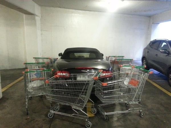 Una molestia generalizada provocó este domingo un vehículo de lujo que estaba mal estacionado en el mall Alto Las Condes de la capital.