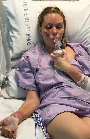 Las crudas fotos de ex Miss Australia tras ser impactada por granada en redada policial