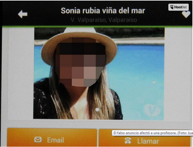 Días de terror ha vivido Sonia, una profesora de educación básica de Viña del Mar, luego de que le robaran una foto en Facebook para, posteriormente, hacerla pasar como escort, utilizando la misma imagen para promocionar sus ‘servicios’ en un conocido sitio web.