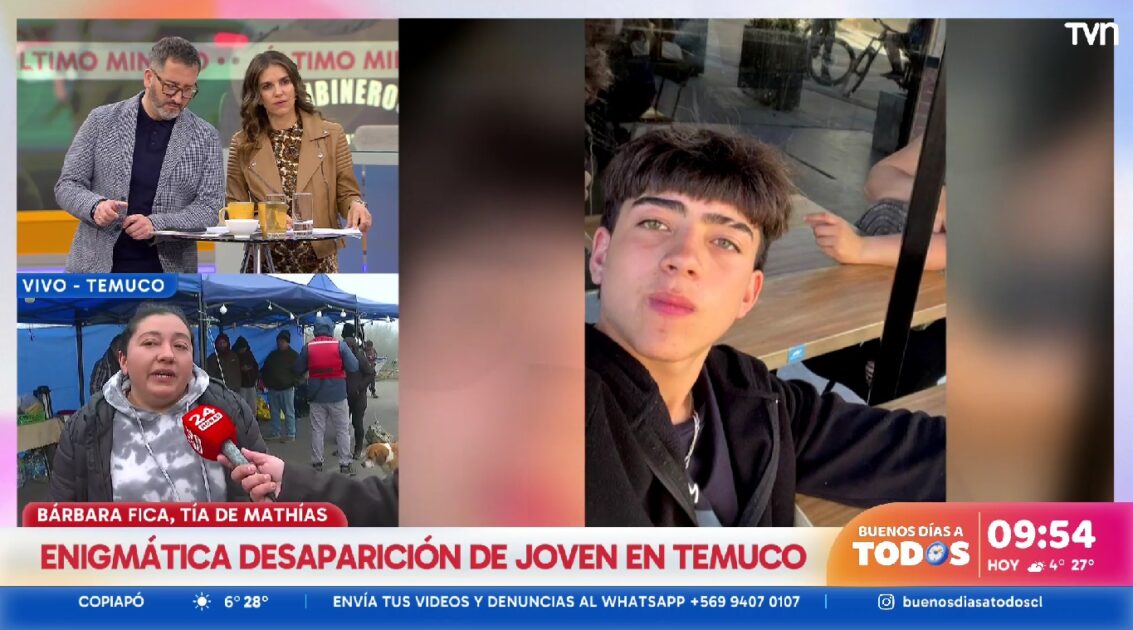 “Lo divisó, pero lo perdió de vista a 50 metros. Cuando dio el aviso no pudieron seguir su rastro”, indicó Bárbara Fica, representante de la familia, y tía del joven, al matinal Buenos Días a Todos.