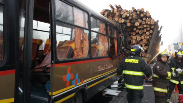 32 personas lesionadas es el saldo preliminar de un accidente de tránsito ocurrido esta mañana en el kilómetro 22 de la Ruta de la Madera, que une Concepción y Santa Juana.