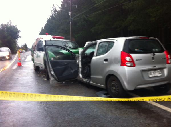 El hecho se registró pasadas las 9 horas a la altura del kilómetro 100 de la ruta Q-59 en el sector El Hualle cuando un furgón del Retén Canteras que circulaba de sur a norte colisionó frontalmente a un automóvil particular.