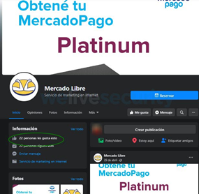 Luego de recopilar todos estos datos de la víctima, el sistema redirecciona a una página de Facebook en la que se suplanta la identidad de Mercado Libre.
