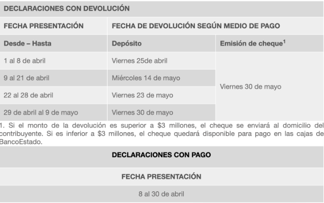 Nota: Si el monto de la devolución es superior a $3 millones, el cheque se envía al domicilio del contribuyente. Si es menor, estará disponible para cobro en BancoEstado.