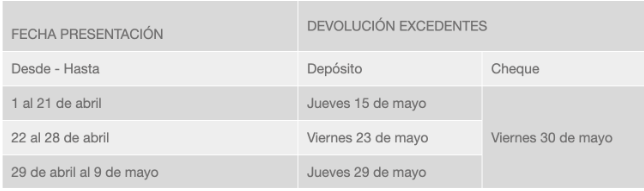 Para quienes declaren entre el 1 y el 8 de abril y elijan transferencia electrónica, la devolución de impuestos será el viernes 25 de abril.