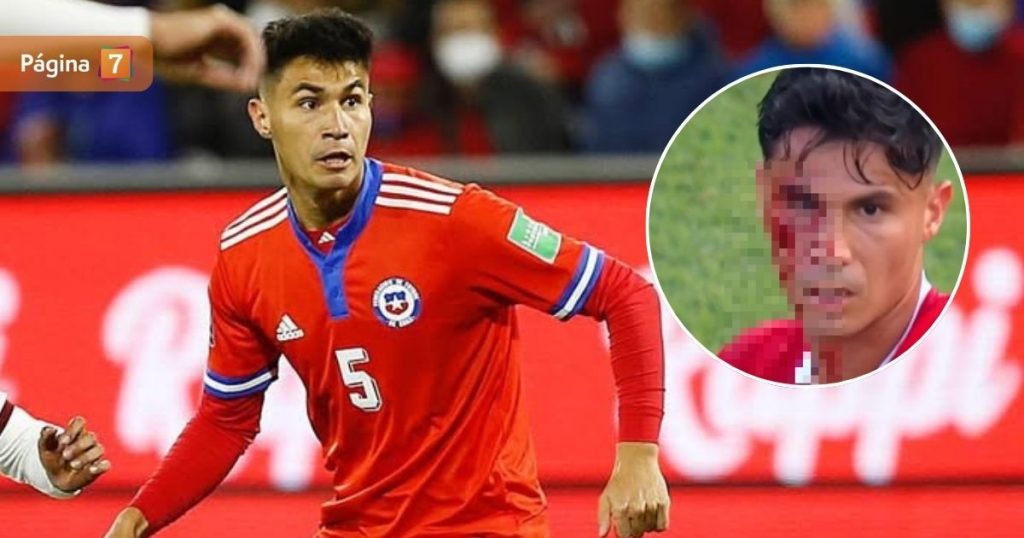 El mediocampista chileno cayó al suelo con la parte derecha del rostro ensangrentado, por lo que necesitó atención médica.