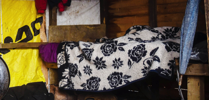 “Hay una gotera entre la pieza de mi hermano y la de mamá, cae un chorro de agua, hay que ponerle una carpa. Esta media agua yo se la compré a mi mamá hace muchos años, cuando traían casas del Hogar de Cristo para vender, en esos años me costó $125.000″.