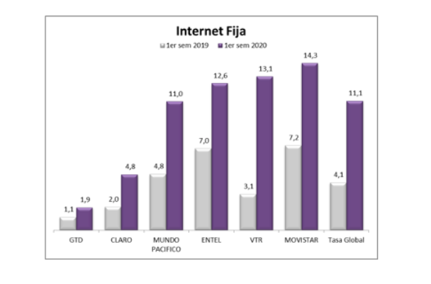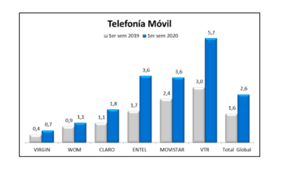 Las compañías que tuvieron una mayor alza en su tasa de reclamos fueron VTR, con un aumento de 2,7 puntos respecto al primer semestre del año 2019; seguida de Entel, con un incremento de 1,9 puntos.