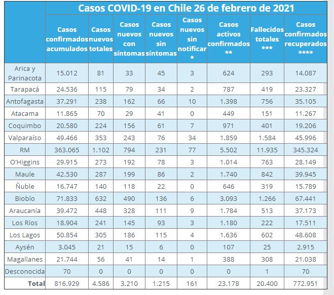 🔸 90 fallecidos (20.400 en total) pic.twitter.com/dj2UnDOp7f— Ministerio de Salud (@ministeriosalud) February 26, 2021