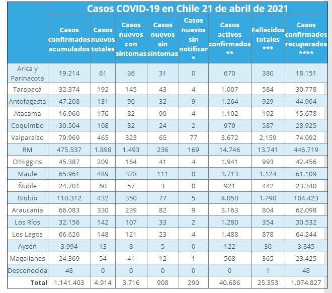 🔸 12.508.296 en total pic.twitter.com/HAfeMUCX3H— Ministerio de Salud (@ministeriosalud) April 21, 2021