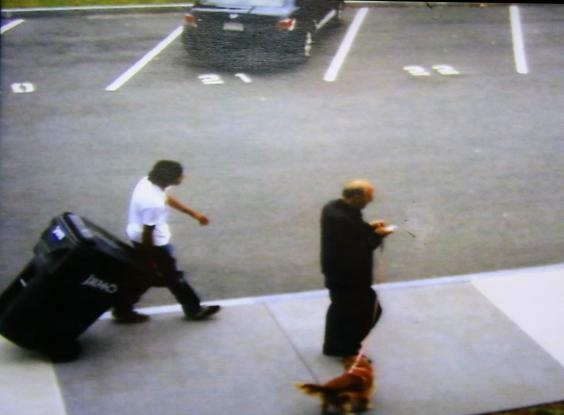 En la filmación se puede ver al chico sin zapatos y aparentemente, con manchas de sangre en sus manos y en su pantalón de jeans. De hecho, el chico luce sospechoso al cambiarse de zapatos y luego sacando el basurero lejos de la escuela con un pasamontañas sobre su rostro.