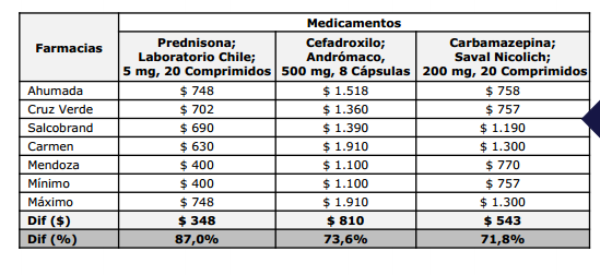 Además, el Sernac comparó las diferencias del costo de determinados medicamentos, según la marca del mismo, identificando cuáles resultan más baratas y más caras.